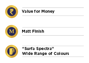 coverage of 40-45 Sq.ft per litre for two coats on Surfa Nova surface having regard to